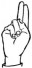 На ћирилици написано ВУКОСАВ РАДЕНКОВИЋ састоји се из 17 слова [?]. Исписано ћириличном једноручном азбуком за глувонеме: